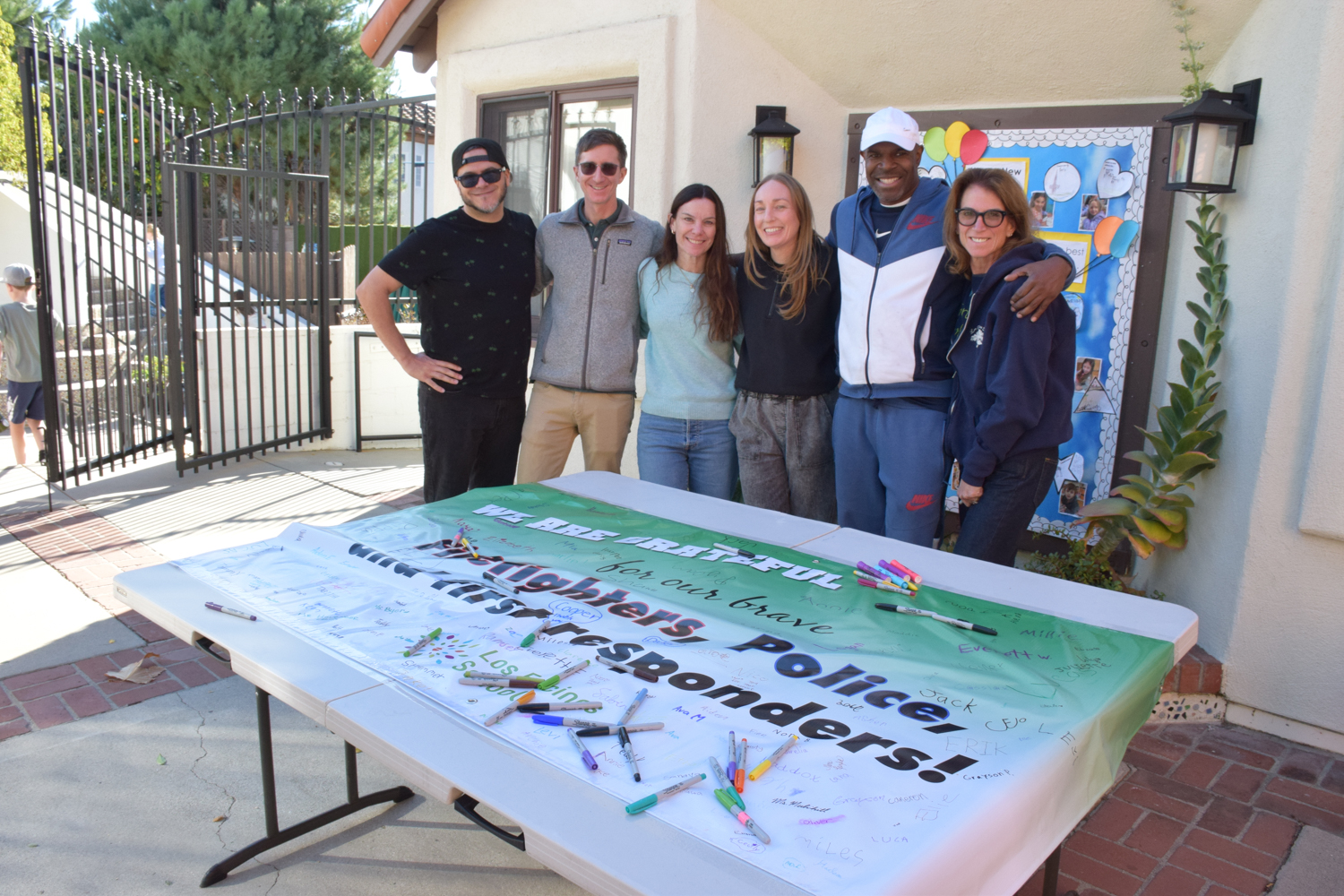 It reads, “We are grateful for our brave firefighters, police, and first responders!”